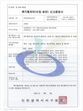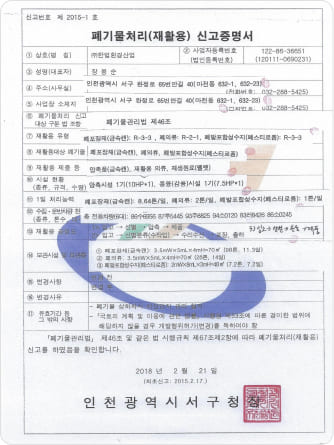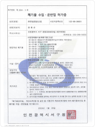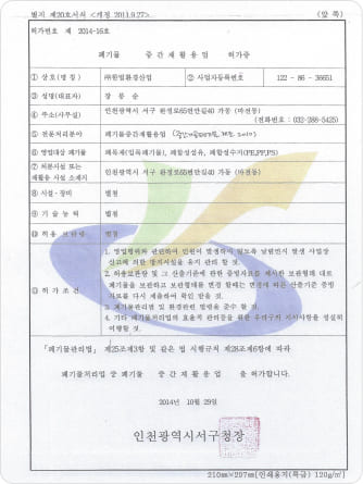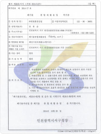 Permit for Intermediate Waste Recycling Business